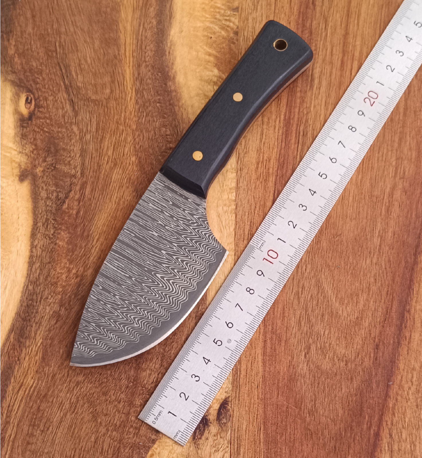 Descoperă cuțitul de vânătoare perfect pentru jupuire oi, capre sau prelucrarea pielii! Design premium cu aspect de Damasc, lamă ascuțită și mâner ergonomic.