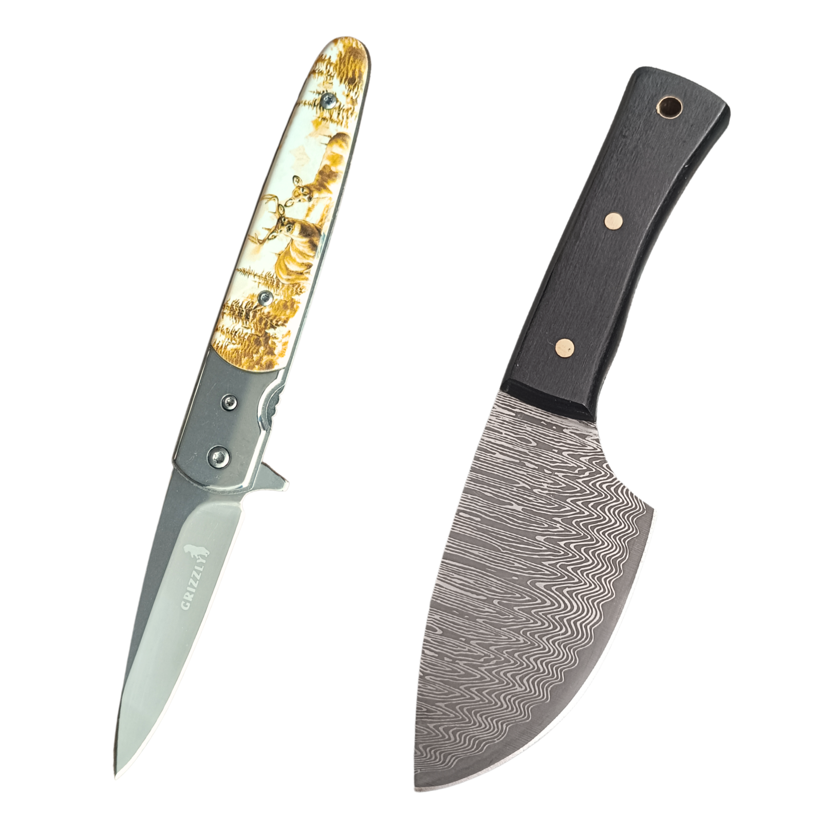2 Cuțit de vânătoare și jupuit – lamă în stil Damasc GospodarMag
