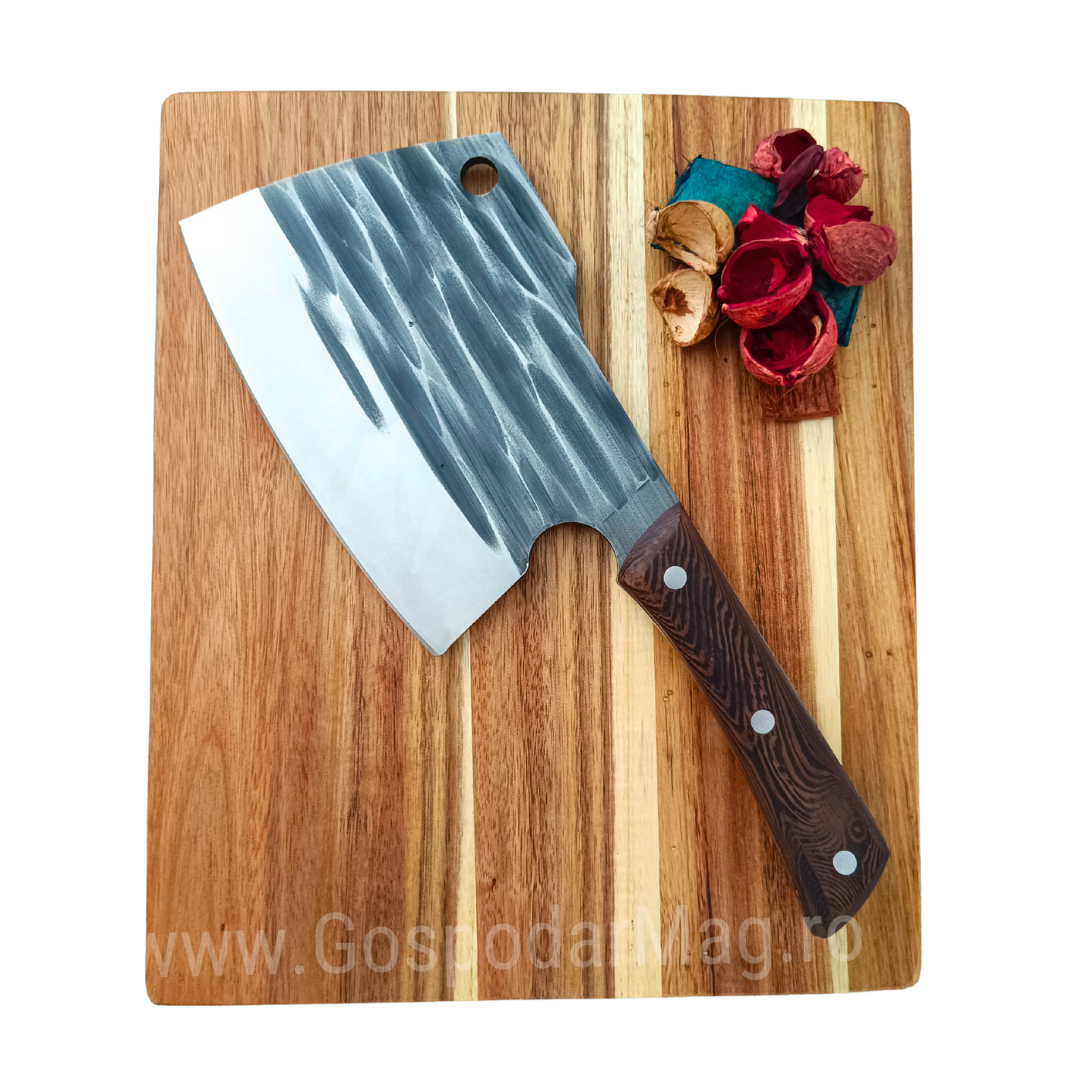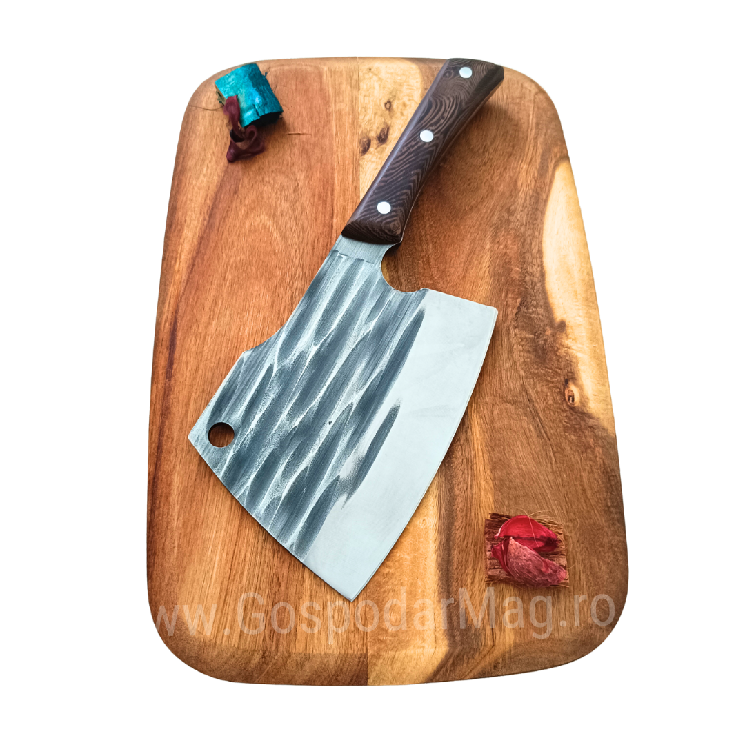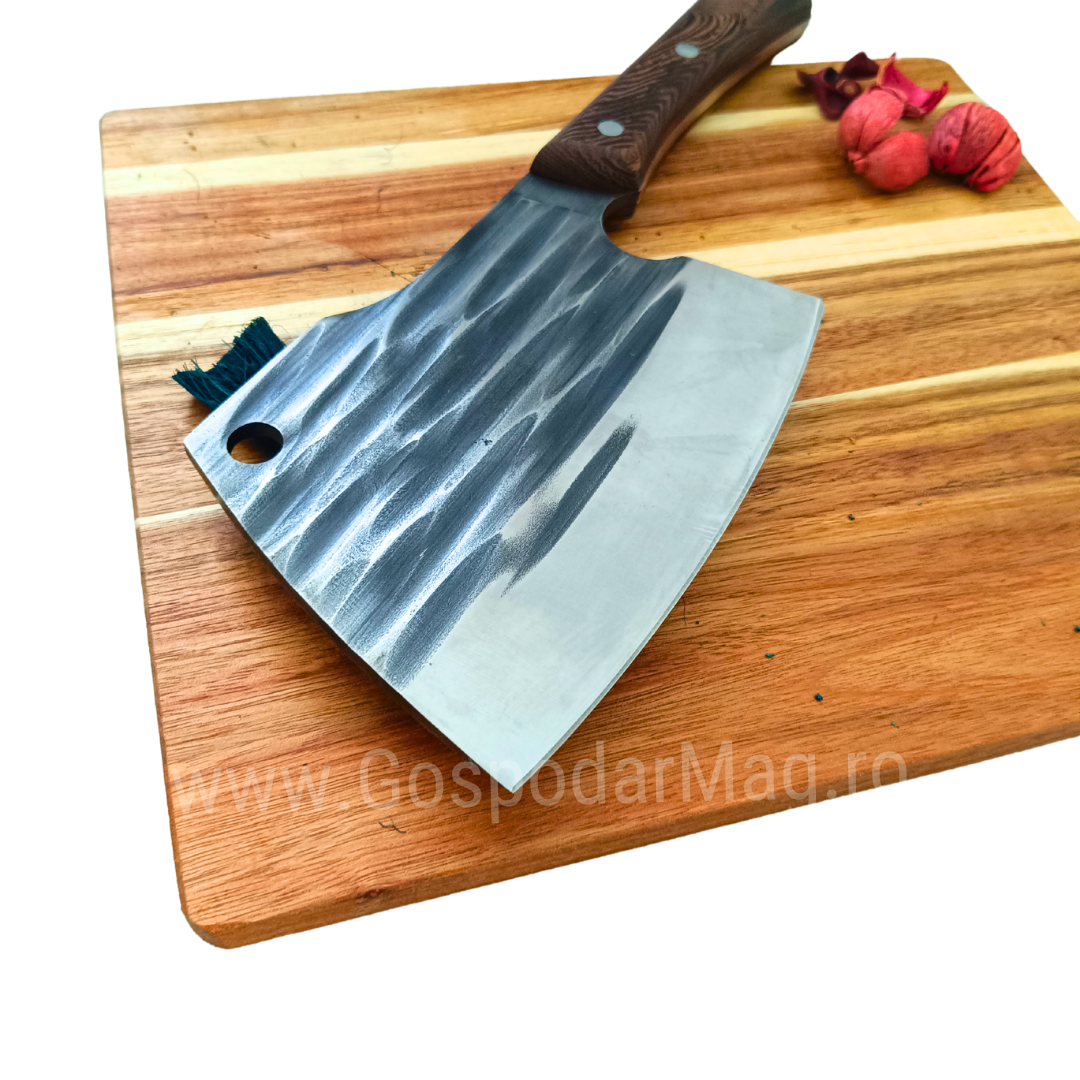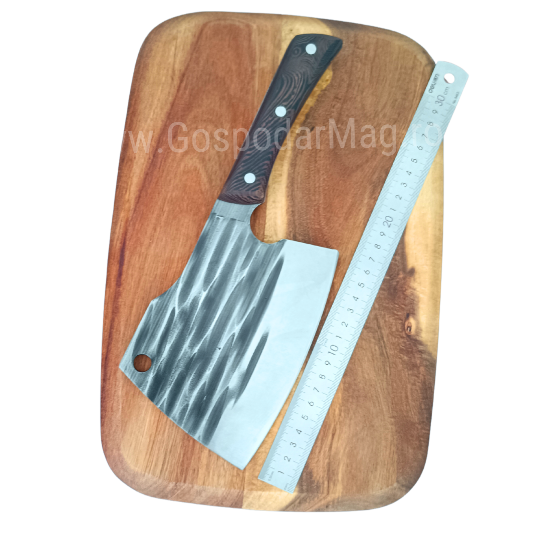 Satarul din oțel carbon este o unealtă deosebită, ideală pentru măcelari in lucrul cu oasele sau in alte activități diverse în gospodărie. Construit dintr-un oțel carbon de calitate superioară, acest satar combină durabilitatea și rezistența cu ascuțimea remarcabilă a tăișului. Designul robust al lamei și greutatea sa considerabilă il fac potrivit pentru sarcini care necesită putere și precizie, precum despicarea oaselor. Cu toate acestea, versatilitatea sa se extinde dincolo de bucătărie. Datorită greutății și construcției solide, acest satar poate fi folosit cu ușurință în gospodărie pentru activități precum tăierea lemnelor sau poate deveni un partener de încredere în excursiile de camping, unde puterea și utilitatea unei astfel de unelte devin esențiale.