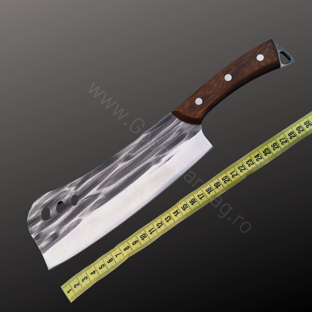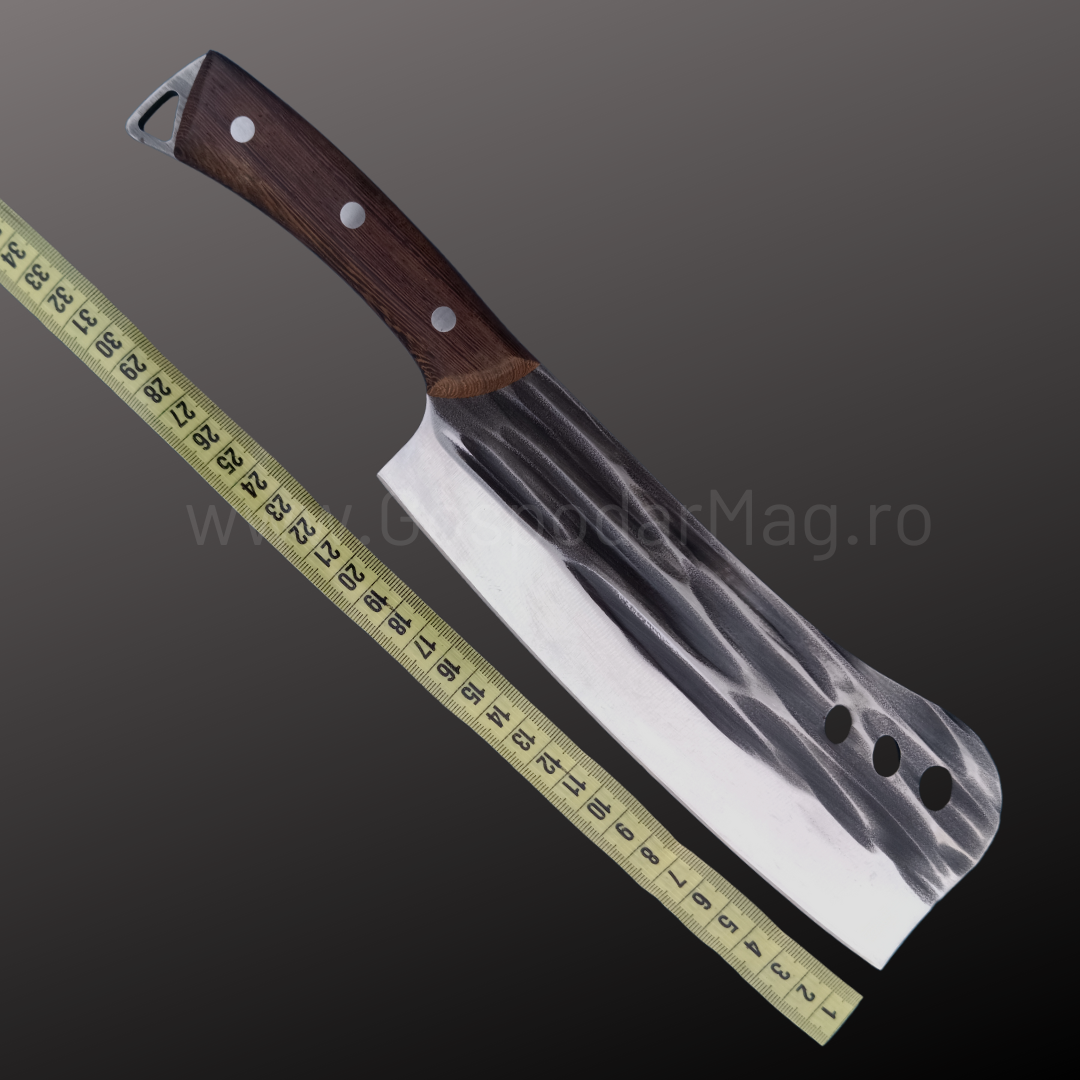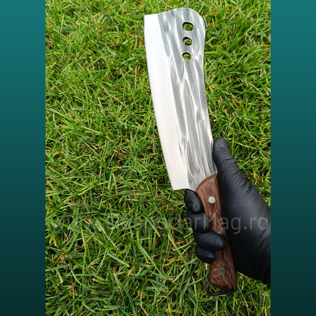 Materialul din care este confecționat, respectiv oțelul carbon, conferă satarului rezistență, durabilitate și o ascuțime excepțională. Cu o dimensiune impunătoare a tăișului de 21 de centimetri, acest satar este ideal pentru sarcini precum tocatul și măruntirea cărnii, coastelor, oaselor mici de pasăre.