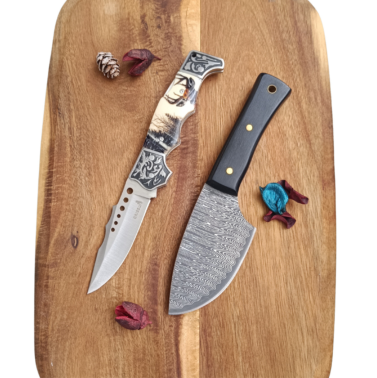 Set Cadou Premium: Cuțit Jupuit Full Tang + Briceag Cerb